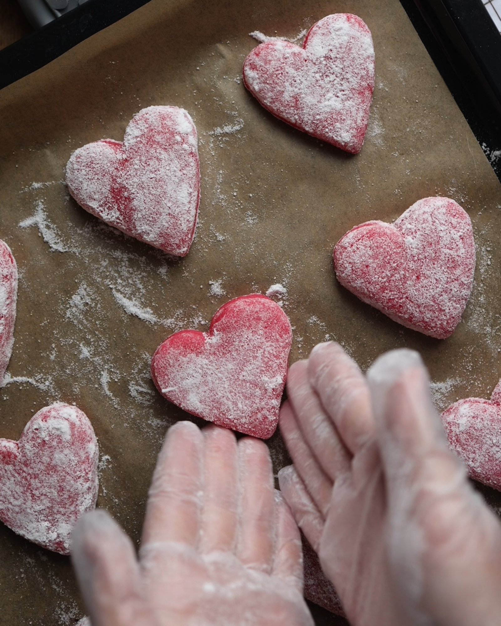 Preheat the oven to 180°C (350°F) and line a baking tray with parchment paper. Remove the chilled dough from the refrigerator. Roll small portions (about 1 tablespoon each) into smooth balls using your hands, or roll out the dough (about 5–7 mm thick) and cut into shapes.