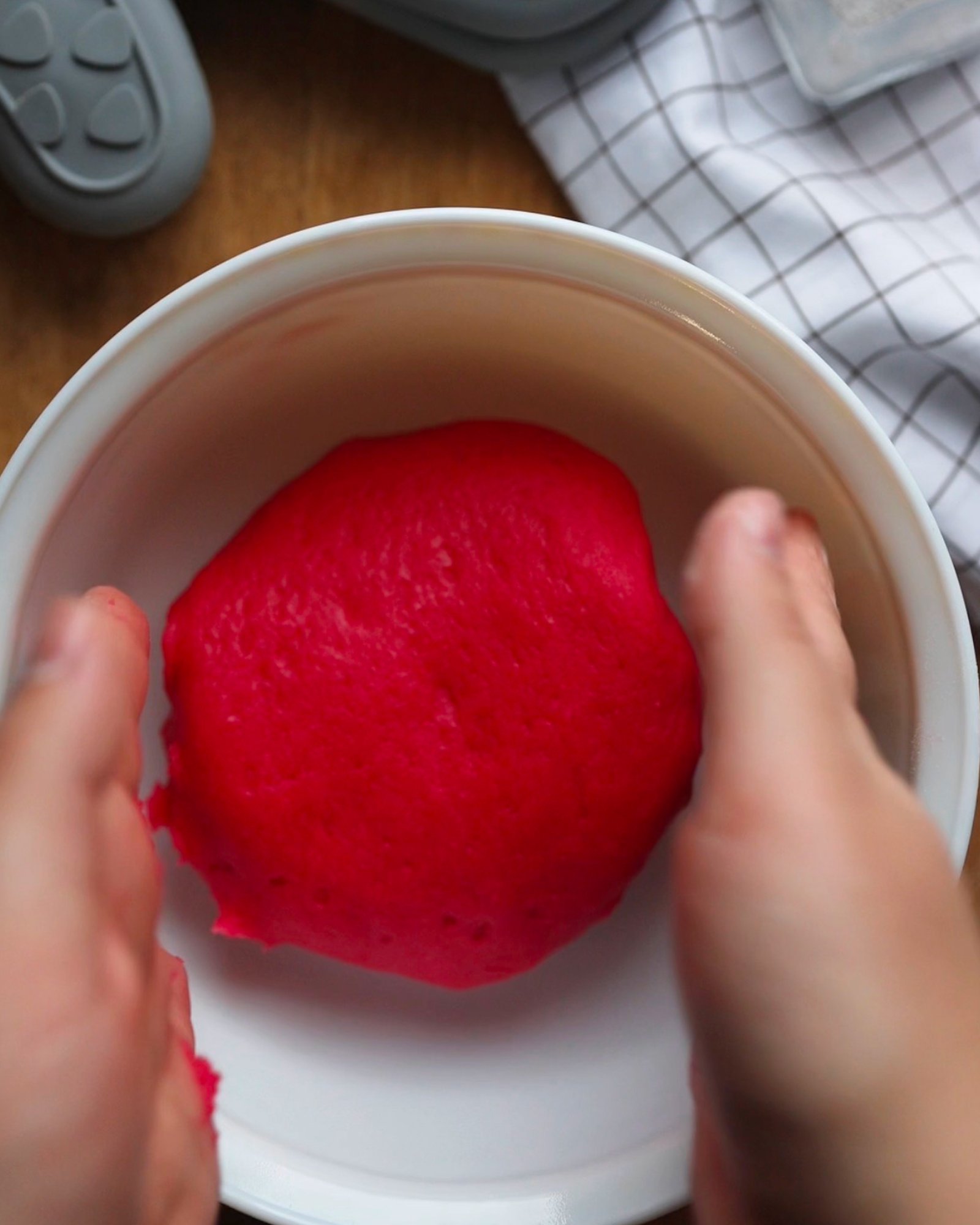 The dough should be soft, smooth, and slightly pliable — similar to modeling clay. It should not stick to your hands. If the dough feels too sticky, add 1 teaspoon of flour at a time until it reaches the correct consistency.